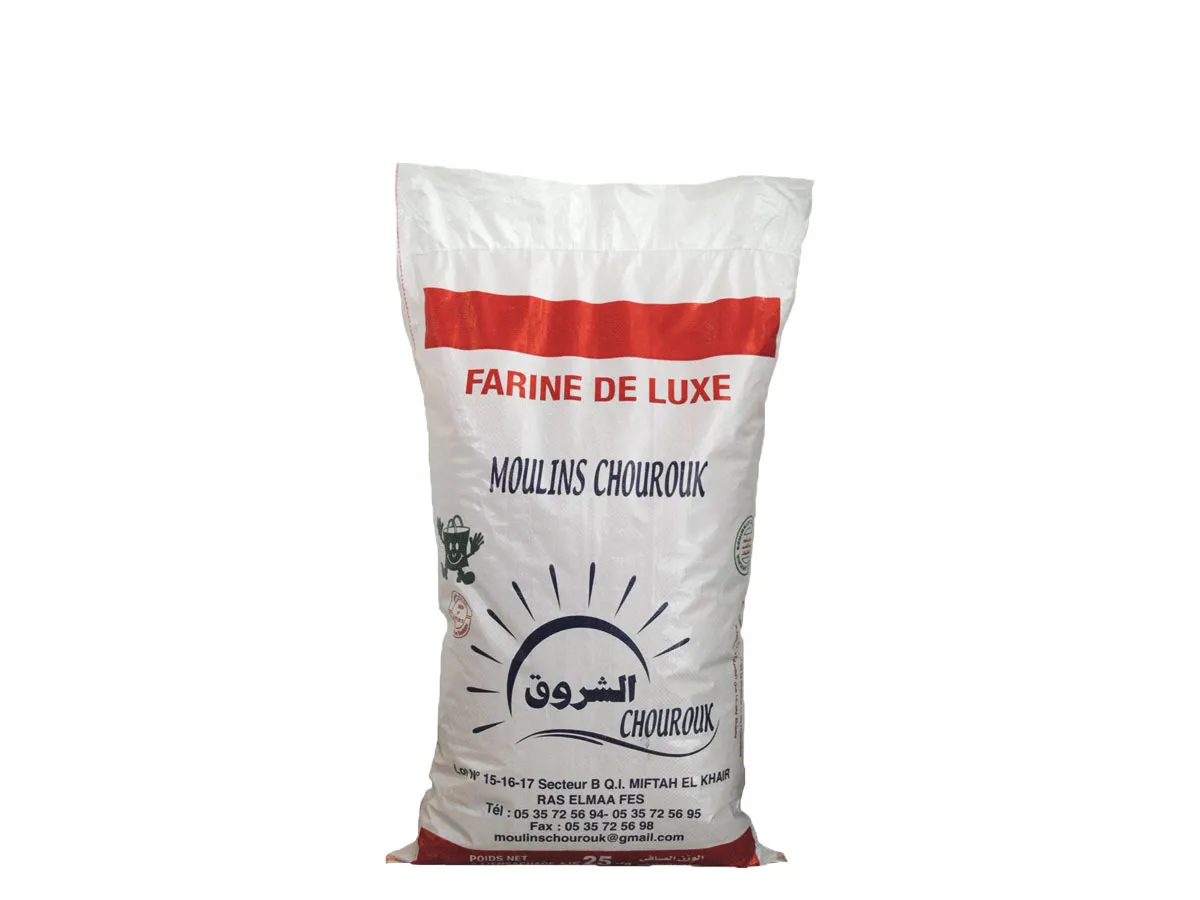 Le sac en polypropylène tissé laminé se caractérise principalement par sa grande résistance aux ruptures, aux chutes et aux frottements. Ce sac se caractérise par un meilleur rendu d’impression grâce à sa couche de laminage. C’est un sac solide et étanche qui peut être utilisé pour différents produits, issus de différents secteurs. Cette gamme de sacs peut se décliner à l’infini selon les dimensions, la résistance ou encore le choix d’impression. Le processus de fabrication est très rigoureux et demande des contrôles de qualité fréquents. Disponible sur stock dans de nombreux formats standard, il peut également être réalisé suivant un cahier des charges précis en fonction des besoins spécifiques de nos clients. Exemples d’utilisation: farine, semoule, riz, sucre, couscous, pâtes, aliments de bétail et de volailles, fertilisants, etc. Véhiculez votre marque en personnalisant votre sac. Contactez nos spécialistes pour un conseil ou un devis personnalisé.